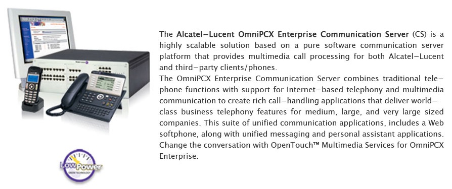 The Alcatel-Lucent OmniPCX Enterprise Communication Server (CS) is a highly scalable solution based on a pure software communication server platform that provides multimedia call processing for both Alcatel-Lucent and third-party clients/phones.